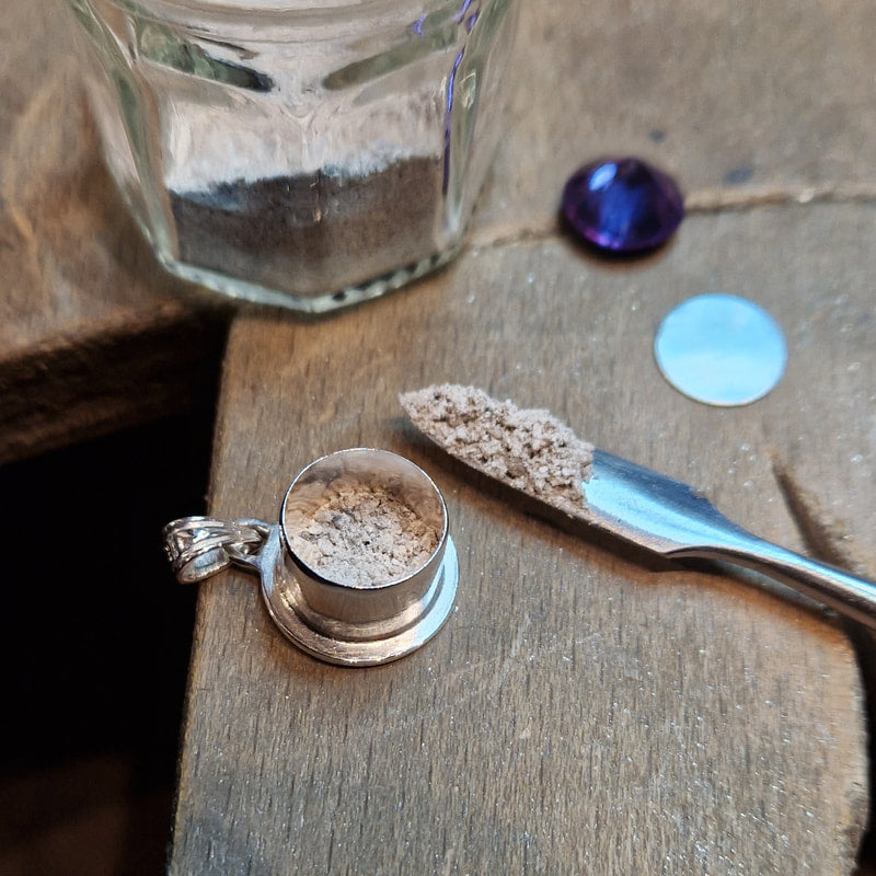 In recent years I've been commissioned to make various pieces of jewellery which contain the ashes of a loved one. Behind the stone of each of these is a tiny and permanently closed compartment which contain the ashes.