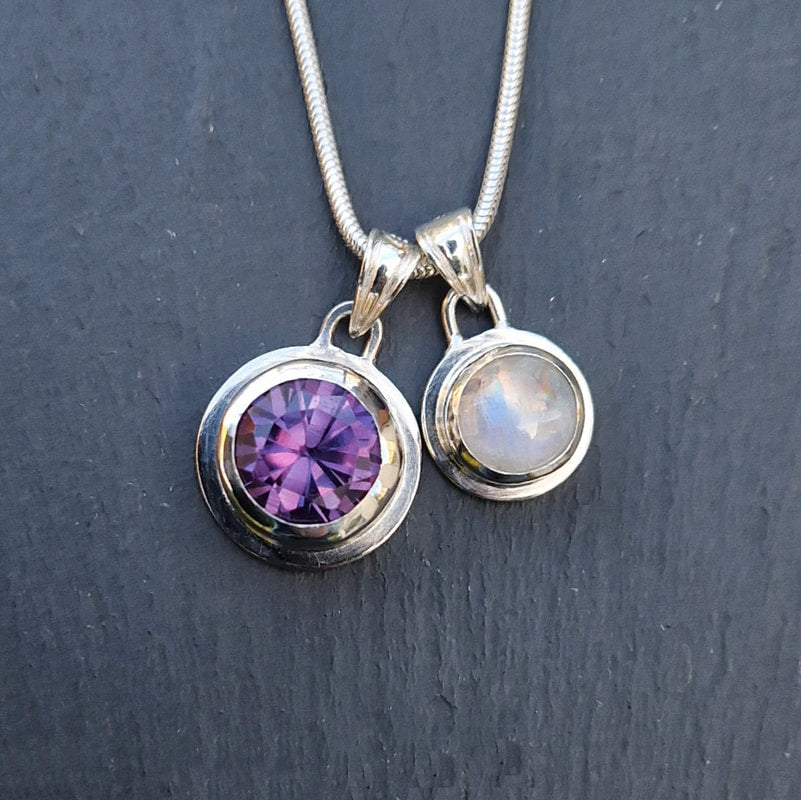 Silver, Alexandrite & Moonstone Ashes Pendants